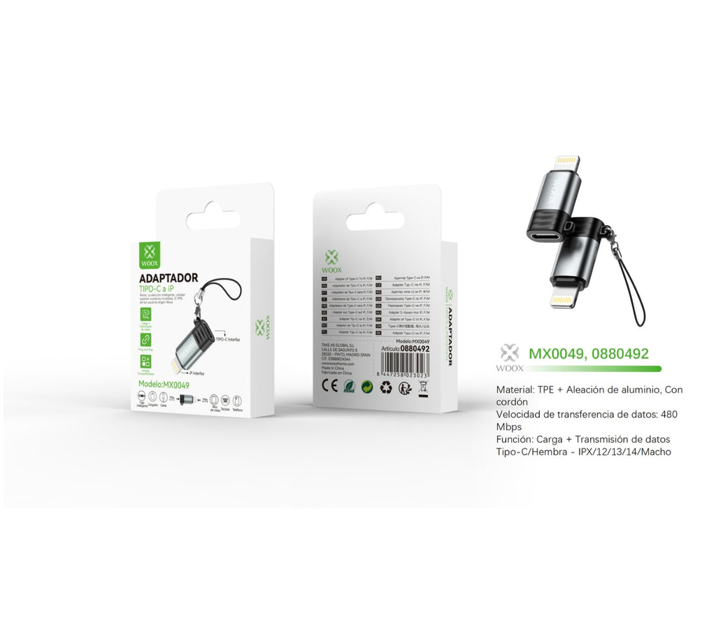 Adaptador Tipo-C/F a Lightning/M - negro - MX0049
