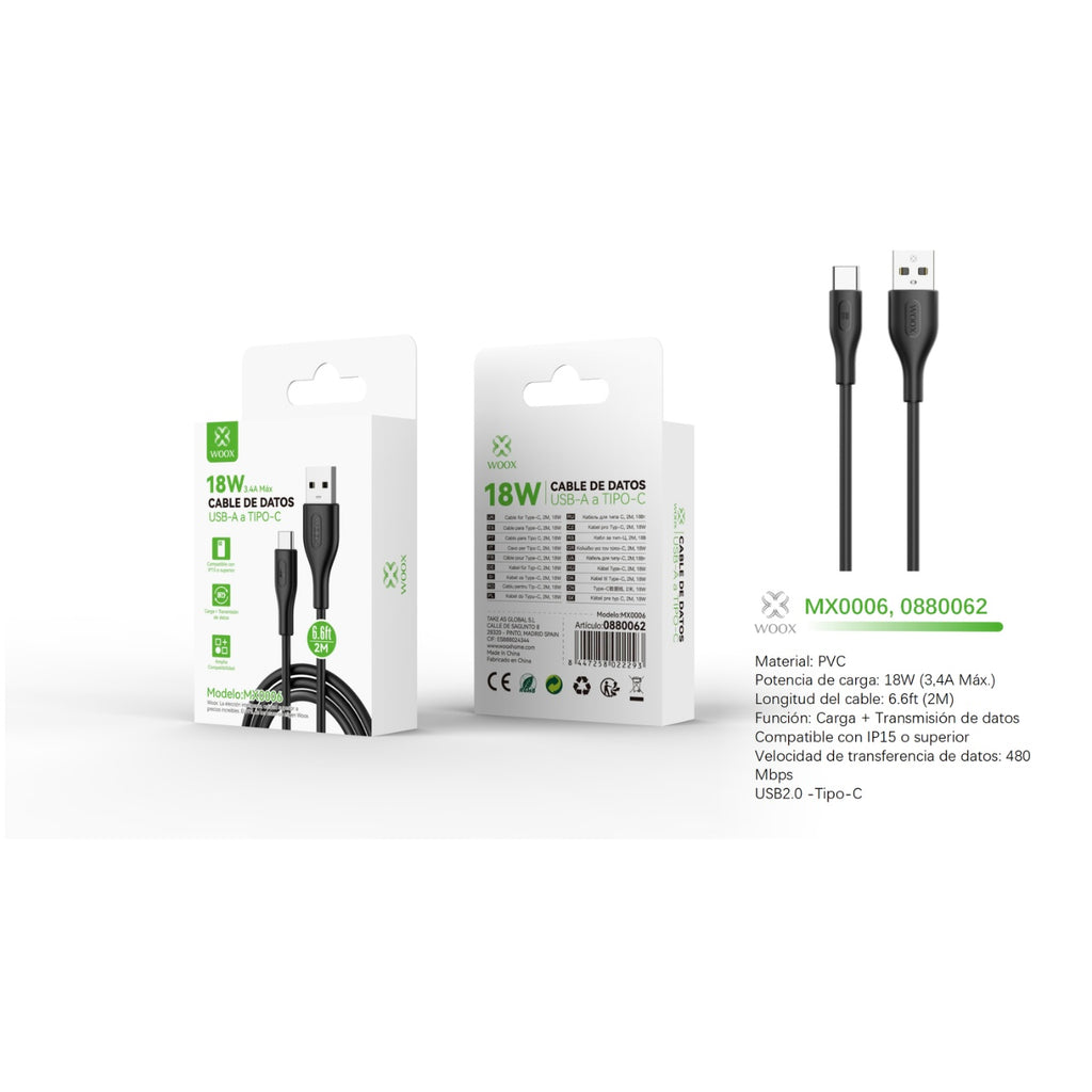 Cable de datos USB a tipo C 18 W 2 m Preto - MX0006 NE